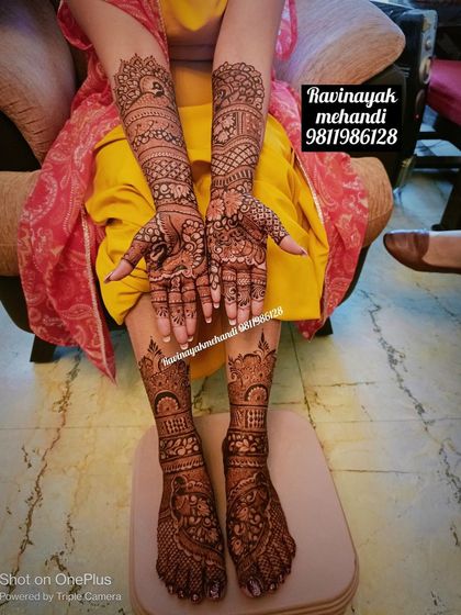 My complete bridal package covers your hands from fingertips to elbows and your feet up to the mid-calf. I use a variety of dense, intricate patterns to ensure you have a stunning and traditional bridal look from every angle.