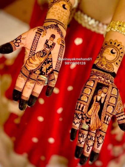 Sabhi tyohar aur shaadi ke liye mehandi - Bridal portrait mehandi, Karwa Chauth, Rakshabandhan, aur har festival pe stylish ya traditional design mil jayega.