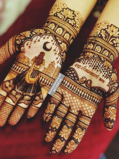 For the bride who wants nothing but the best, this collection showcases our most detailed and elaborate work. We specialize in traditional Rajasthani and custom bridal designs that cover the hands and arms, featuring everything from couple portraits to classic wedding symbols.