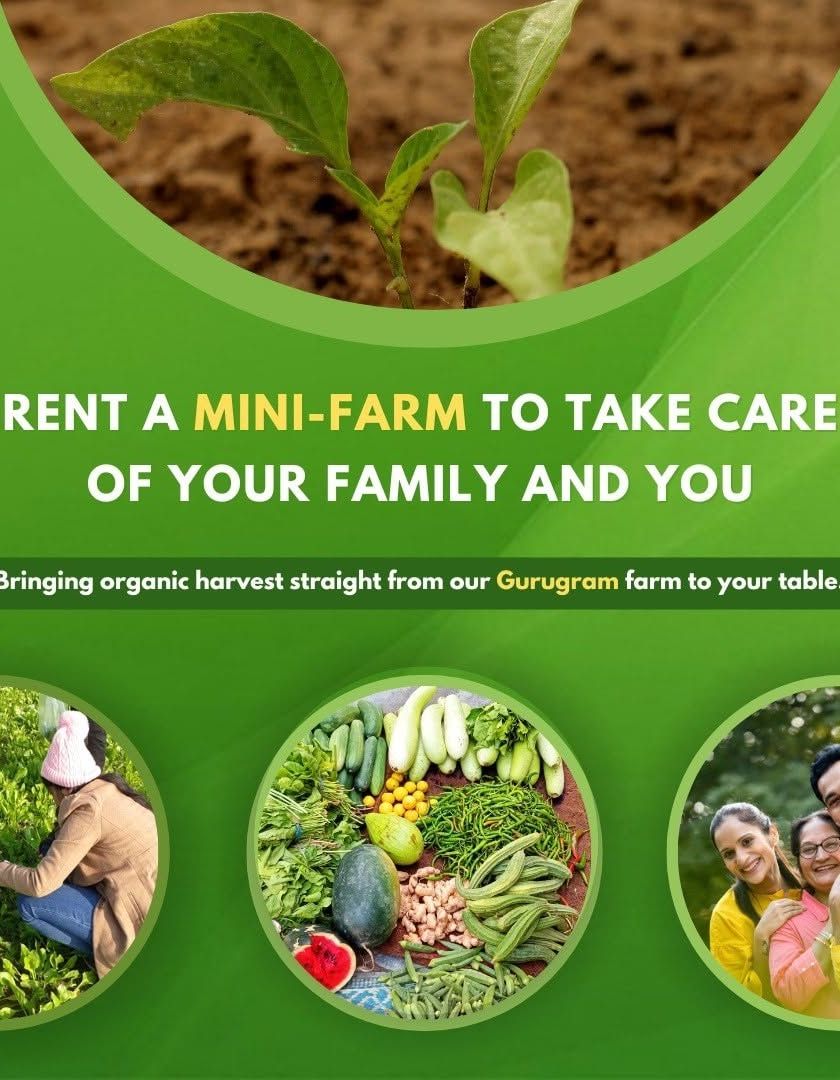 Become an urban farmer with our 'Rent-a-Mini-Farm' program. We provide you with a plot of land on our Gurugram farm, expert guidance, and all you need to grow your own organic vegetables all year round.