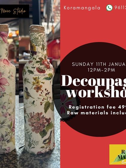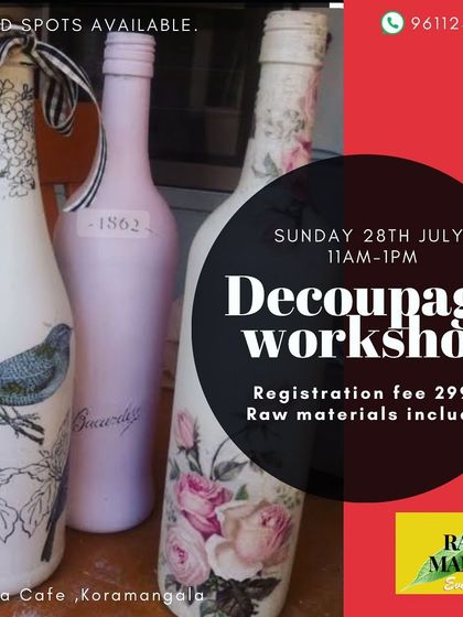 We run relaxed weekend art workshops where anyone can try bottle art, pottery, coffee painting, or quilling with all materials provided and take home what they make.