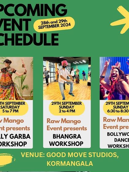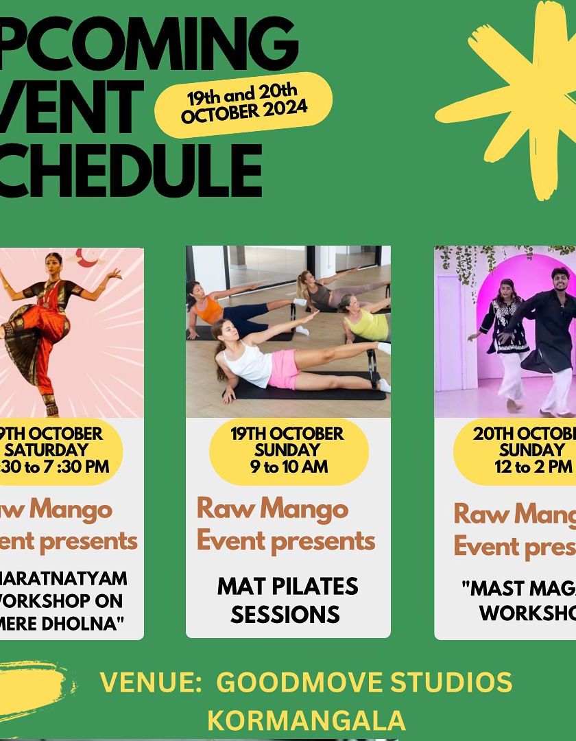 Check out our latest schedule for one-off workshops and special events. From Mat Pilates and Bharatnatyam to special dance styles like Tollywood and Contemporary, there's always something new to try.