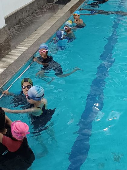 We teach swimming to all ages and levels at our indoor and outdoor pools, with flexible batches, hands-on coaching, and programs for beginners, advanced swimmers, toddlers, ladies, and kids with special needs.