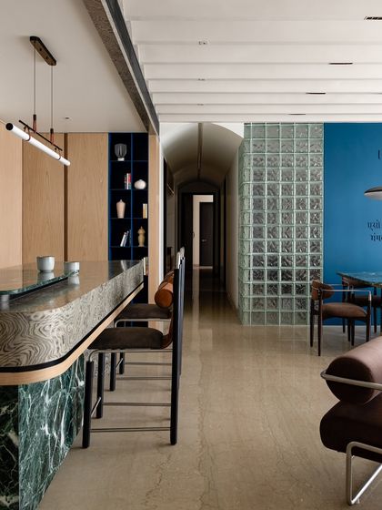 Hey, we’re Minal and Aadesh from Realm Studiio. For us, the magic’s in the mess—dust flying, plans changing, craftspeople hustling. We love sharing those raw, unfinished moments. Our 'Arah' project sums up our vibe: we got wild creative freedom, used old-school glass blocks to brighten up a dark home, and named it after 'Arihanta' (enlightenment). It’s not just about pretty spaces, it’s about homes that feel like new beginnings.