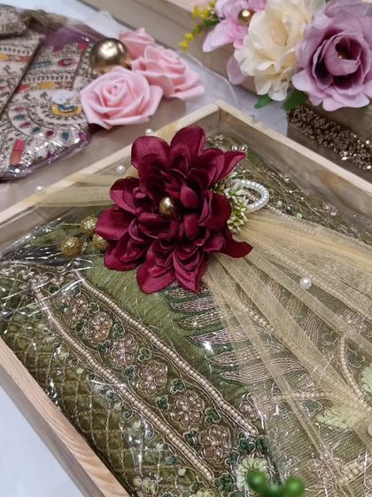 I get what shagun means. I use fabrics, florals, and trays for bridal lehengas, jewelry, and cosmetics. For the groom, themed baskets for shirts or watches. Yes, I even do custom stuff for Gujju weddings.