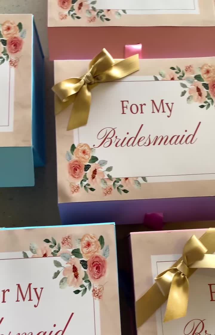 I love creating gifts that celebrate the bride and her amazing support system. This collection includes everything from personalized bridesmaid proposal boxes and bachelorette party favors to luxurious 'Bride-to-be' pamper hampers designed to help her relax and glow before the big day.