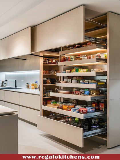 We eliminate clutter and maximize every inch of your kitchen with intelligent storage solutions. Explore our range of German-engineered fittings, including magic corners that bring dead space to life, full-extension pantry units, and perfectly organized drawers for cutlery and spices.