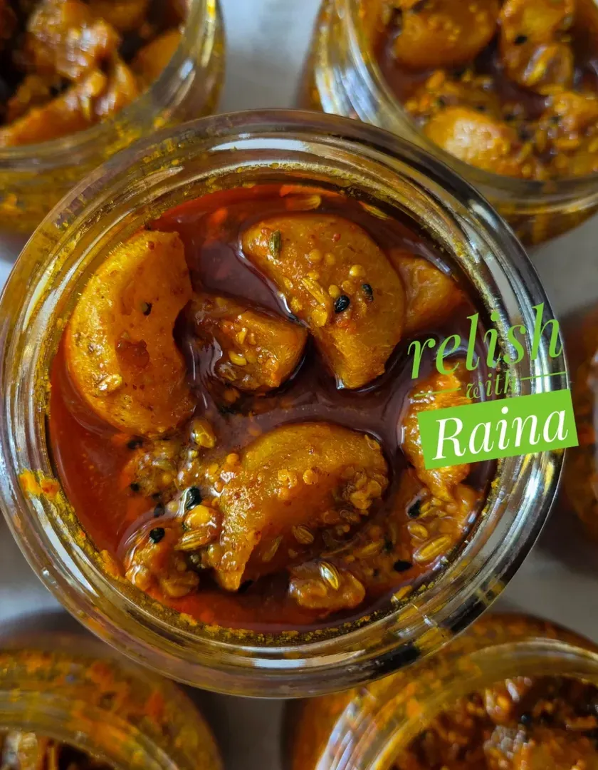 This is my collection of classic spicy and sour raw mango pickles, a staple in every Indian household. I offer different styles, including a traditional North Indian recipe with mustard oil and a dry version with minimal oil that is perfect for travel.