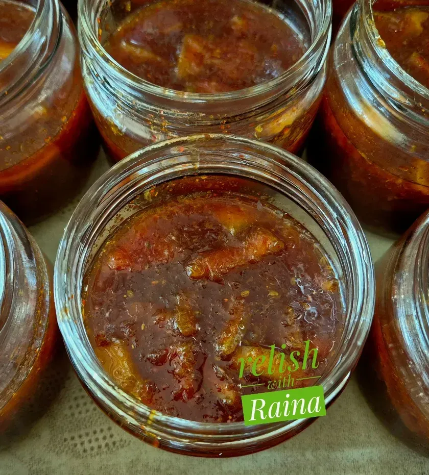 For those who love a balance of sweet and sour, this collection features my sweet mango pickles. I make the traditional Gujarati Chhunda, which is sun-dried for days, and a Rajasthani sweet mango pickle with chunks of kairi.