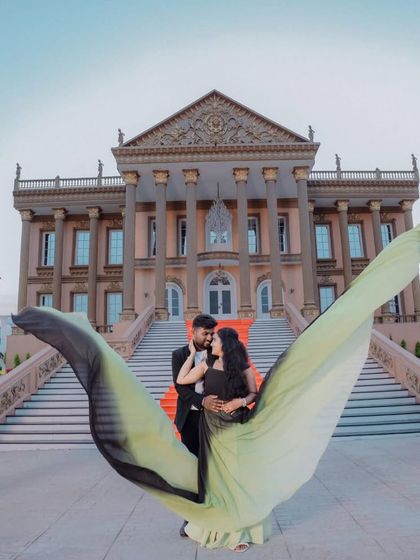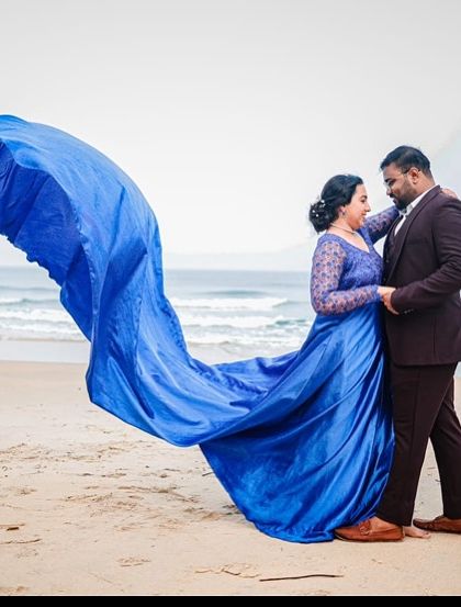 - Styles like fairytale ball gowns, ruffled tulle, and my specialty - flowy gowns with long trains for dramatic photo effects. I even have a royal blue gown with LED lights in the train, perfect for a night shoot (yaarigu beku magic, idu try maadi - try it if you want something magical).