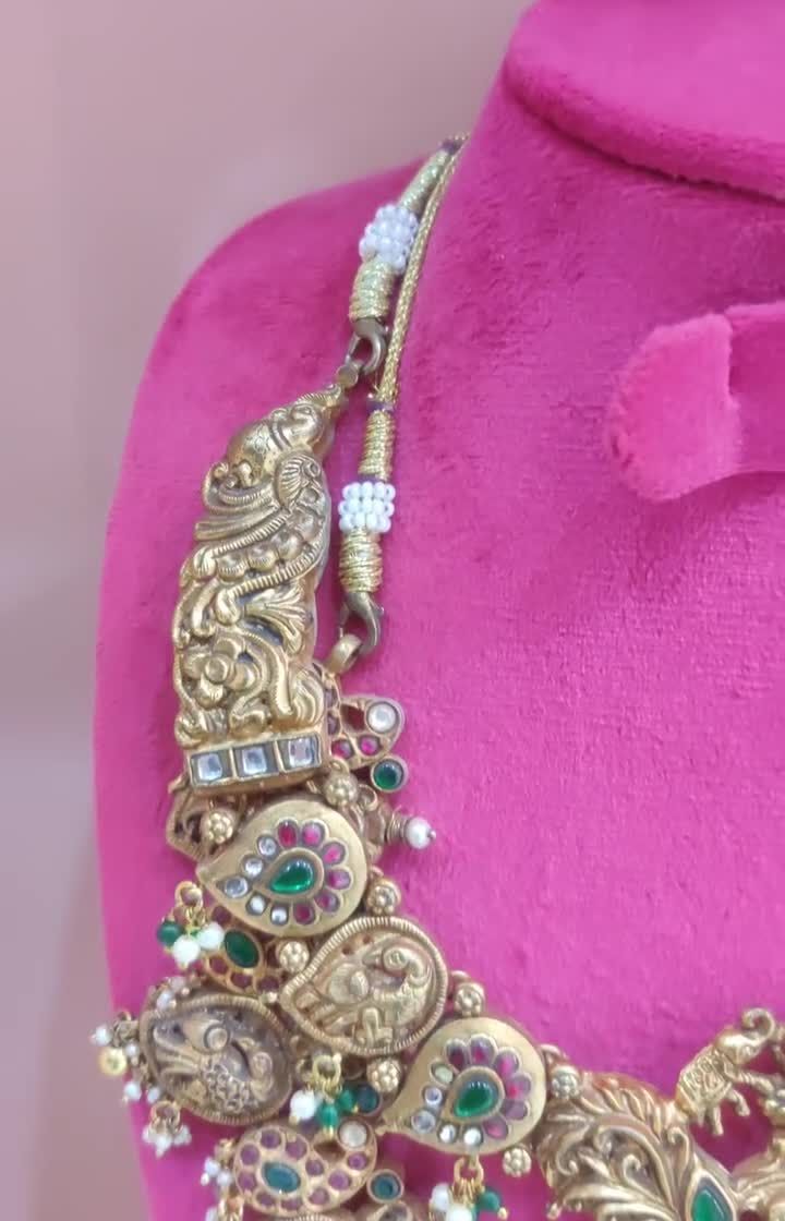 My collection specializes in authentic temple and heritage jewellery with an antique gold finish. You can rent complete sets or mix and match individual pieces like harams, chokers, vaddanams, and jhumkas to create your perfect South Indian bridal look.