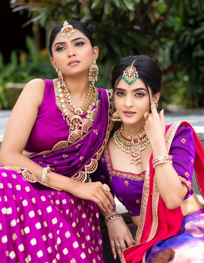 Beyond character recreations, we also design and style custom lehengas for weddings, sangeets, or any special occasion. This collection showcases our work with various fabrics and colors, from pastel green to royal purple, for a unique and modern look.