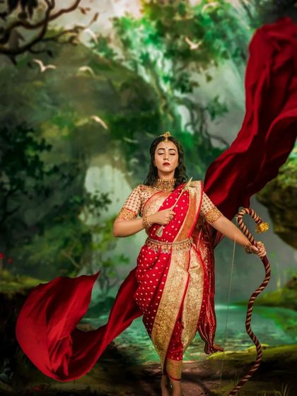 Embody the strength and spirit of the Queen of Jhansi. Our Manikarnika recreation includes the signature yellow pagri, a custom-draped traditional outfit, and period-accurate jewelry to bring this powerful historical figure to life for your photoshoot.