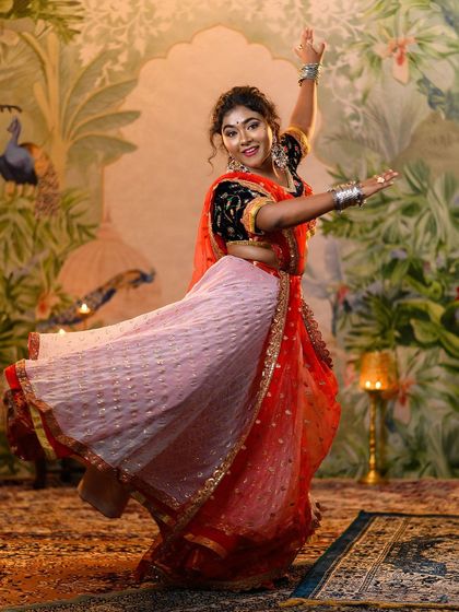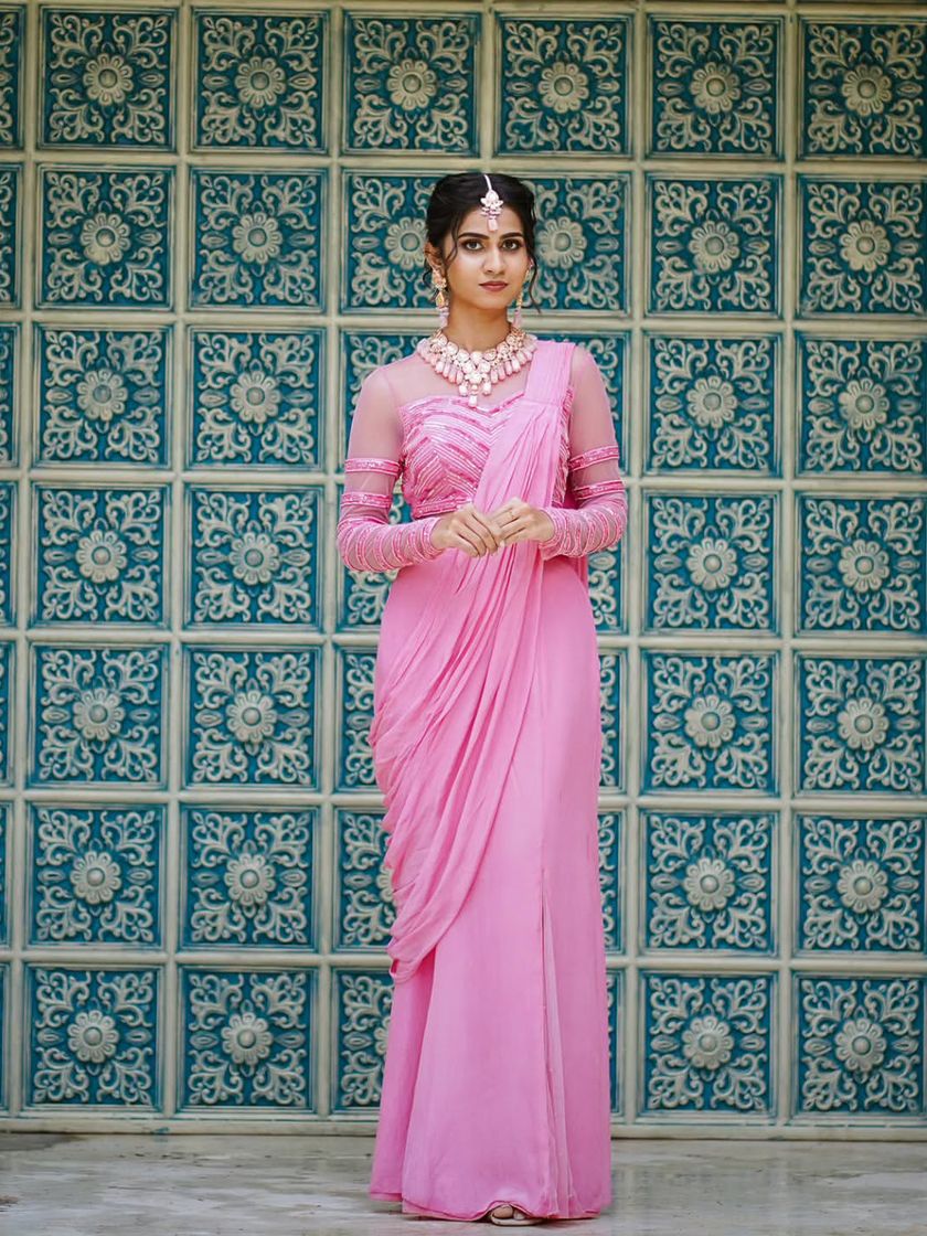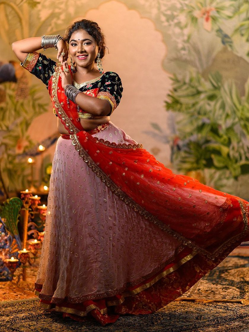 Get the elegance of a saree without the fuss of pleating and draping. Our collection includes modern pre-draped sarees with ruffles and stylish blouses, as well as traditional South Indian half sarees (Langa Voni) in rich silks for festive and wedding occasions.
