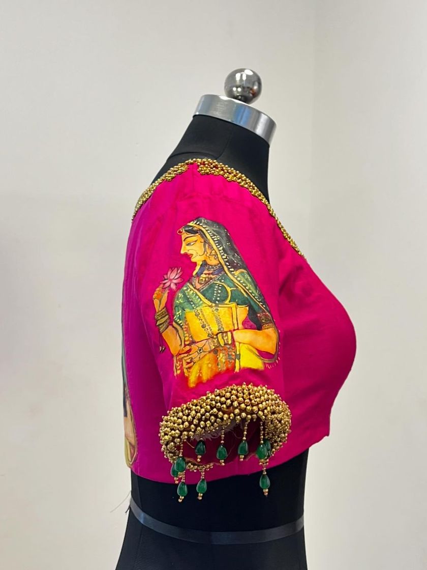 Elevate your own saree with one of our exquisite handcrafted blouses, available for rent. Our collection features unique designs, including blouses with intricate zardosi work, traditional hand-painting, and modern cuts to match any style.