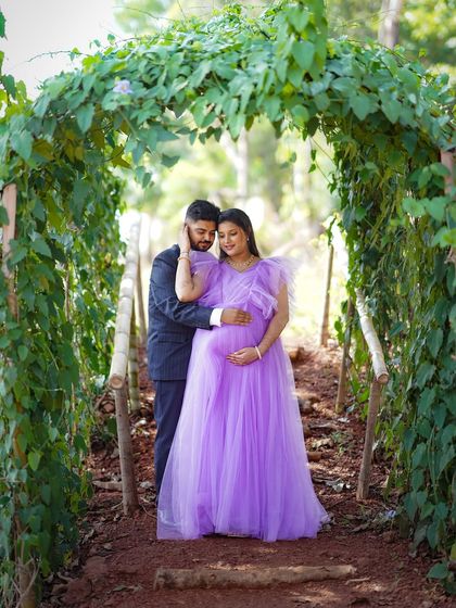 I have a special collection of gowns designed for comfort and style during your maternity shoot. These dresses beautifully highlight your baby bump and are made from flowy, camera-friendly fabrics for both solo portraits and couple shots.