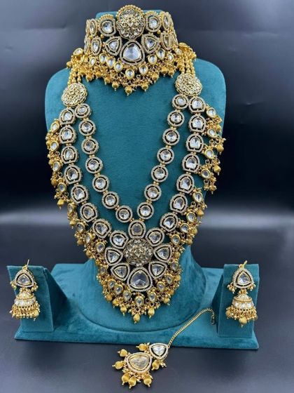 We rent full bridal jewellery sets in different styles like Maharashtrian, South Indian, Kundan, and American Diamond, with all matching pieces included, so you don’t have to buy expensive jewellery for just one day.