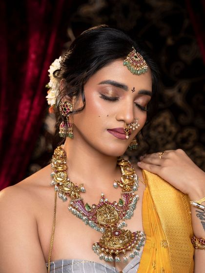 We provide an exclusive collection of authentic South Indian temple jewellery for rent. Our focus is on offering affordable elegance for weddings, festivals, and other special occasions.