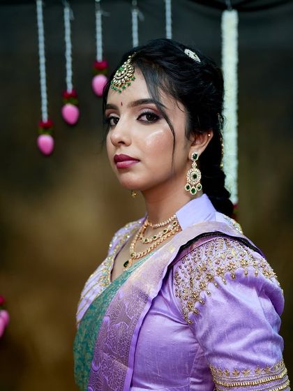 We specialize in traditional and bridal hairstyling through our expert collaborations with renowned stylists like Hair by Siri Artistry, Hair by Akshatha G, and Hair by Brindha Raj.