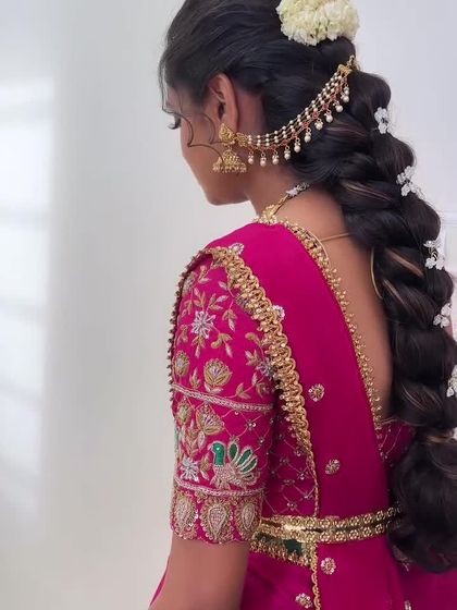 Brides and clients seeking professional hairstyling for weddings, traditional ceremonies, and fashion shoots, especially those looking for authentic South Indian styles.