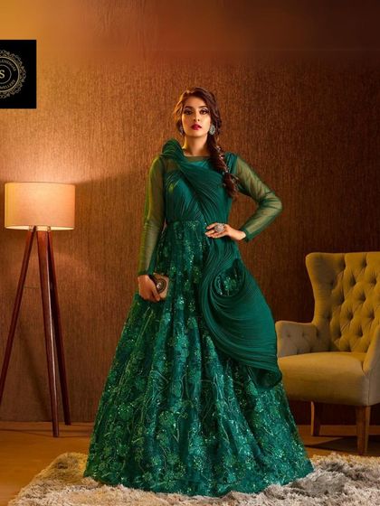 For your cocktail nights, receptions, or any formal event, my collection of evening gowns is here to make you shine. I offer a variety of styles, including sparkling sequined gowns, elegant ruffled designs, and chic Indo-western pieces, some with dramatic detachable trails.