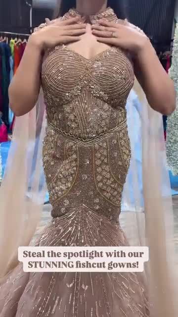 Accentuate your curves with my glamorous mermaid and fishcut gowns. These designs are perfect for creating a dramatic and sophisticated silhouette, featuring sequins, glitter, and intricate beadwork for that red-carpet feel. Many come with detachable trails or capes for added versatility.