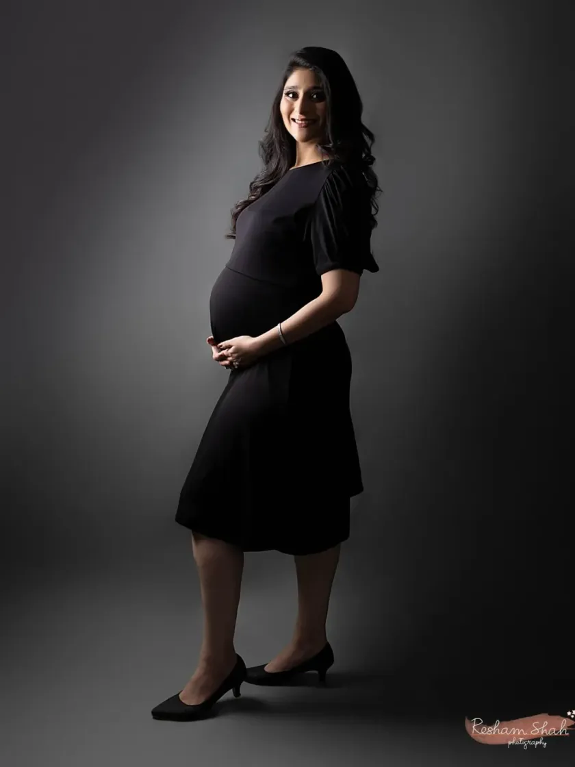 Timeless, simple, and elegant. These sessions use clean backdrops and simple outfits, like a classic black dress or jeans and a tee, to keep the focus entirely on you and your beautiful baby bump.