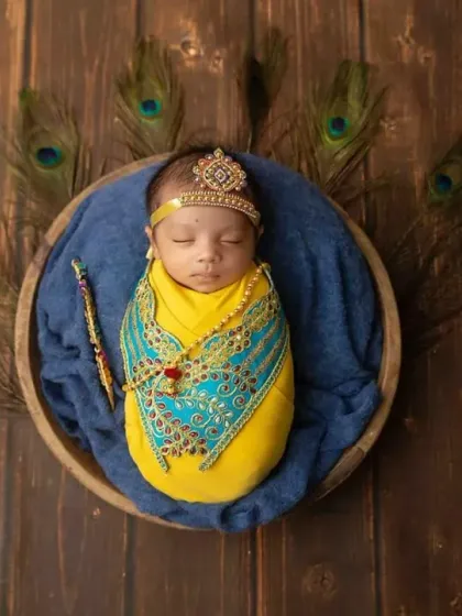 I love getting creative. We can go wild with a themed baby photo shoot - maybe your little one as Little Krishna, an astronaut, or just chilling in a boho floral setup. There are props, costumes, and backdrops for everything from earthy to festive.