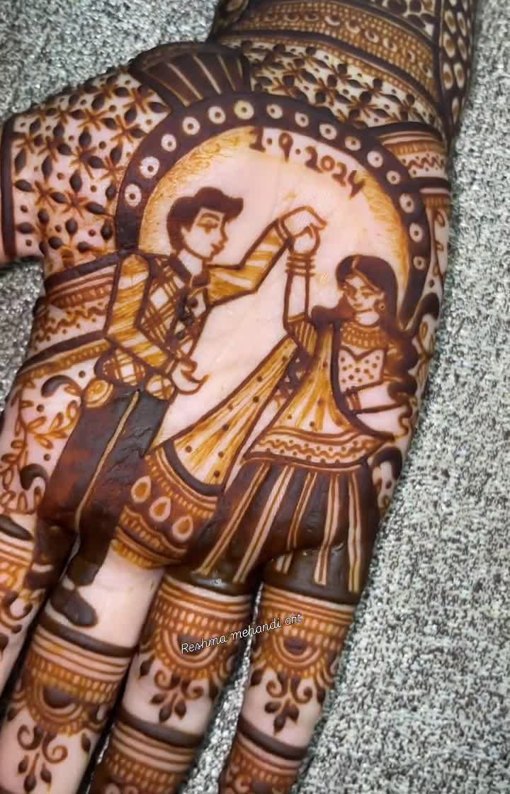 This is my specialty and what I love doing most. I take your favorite photos, moments, and memories, like your proposal or varmala, and turn them into detailed portraits on your hands. It’s the perfect way to wear your love story on your big day.