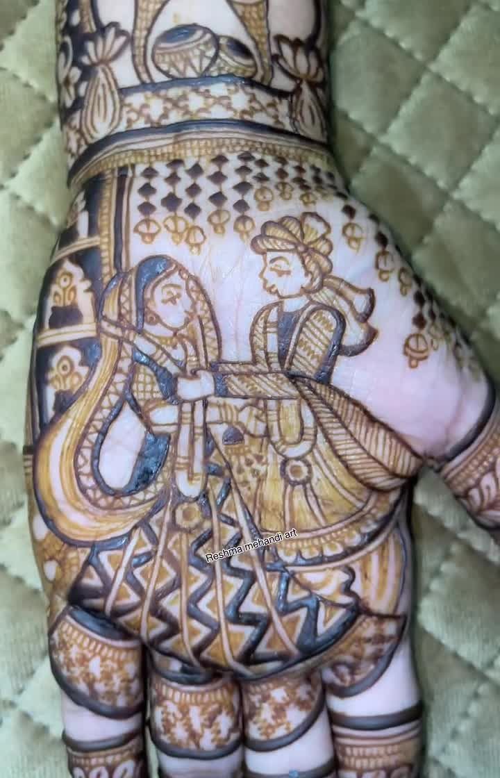 Mehandi can also be a way to honor your family and faith. I create special portraits of the bride with her parents or the whole family. I also love drawing divine figures like Radha-Krishna and Shiva-Parvati, bringing a spiritual and blessed touch to your special day.