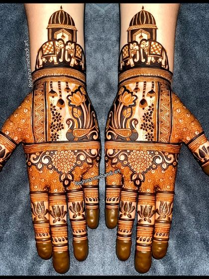 Custom Portrait & Story Mehendi - Specialising in portrait mehendi art and personal stories - skyline, hidden names, emotional moments, all in henna.