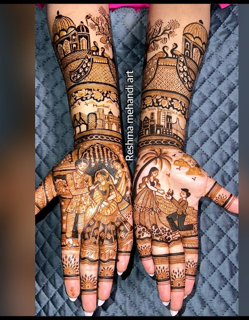 This is where you learn to tell a story with henna. My classes provide in-depth training on creating detailed figures, from couple portraits and family scenes to divine depictions and traditional wedding ceremonies like the hastmelap.