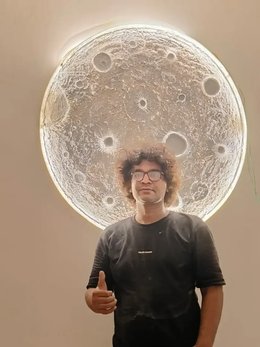 I create large-scale art that transforms a room, including realistic 3D moon lamps with textured surfaces and custom-framed mirrors. Using resin, natural stones, and even peacock feathers, I design unique geode and abstract pieces that serve as stunning focal points for your home.