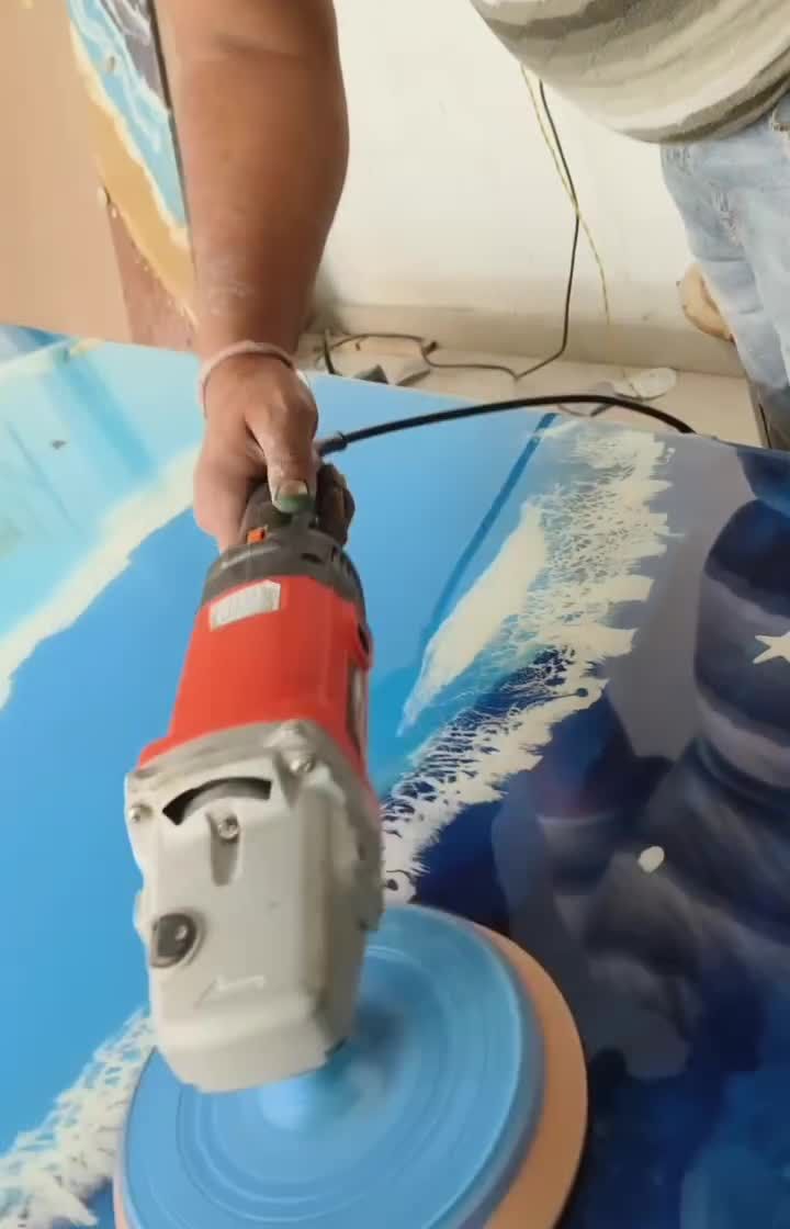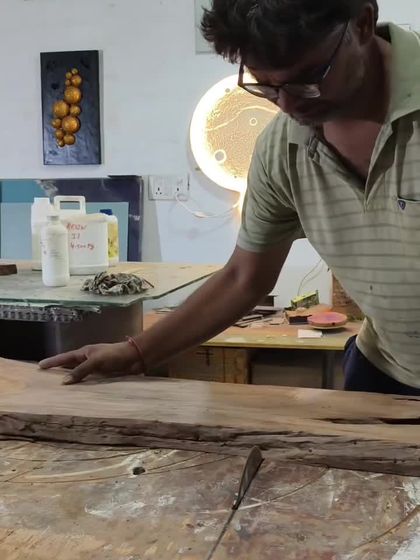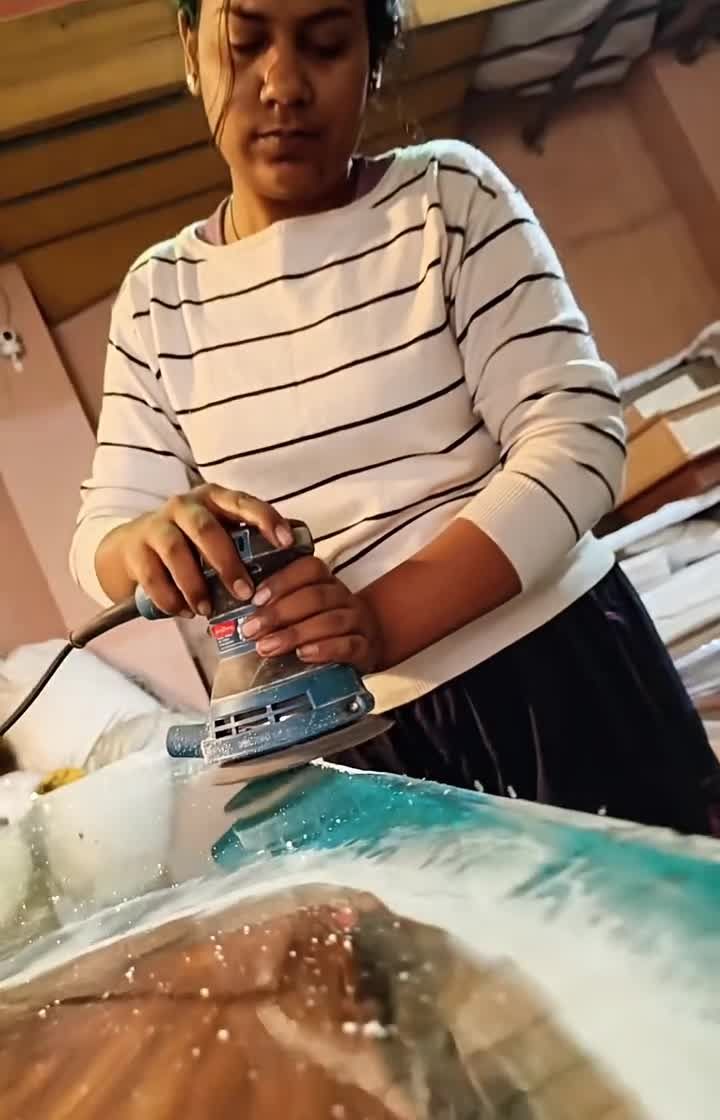 A lot of sweat and hard work goes into every piece before the final shine. This is a look at the entire process, from cutting and sanding raw wood logs to the meticulous process of pouring resin, demolding, and polishing each creation to perfection.