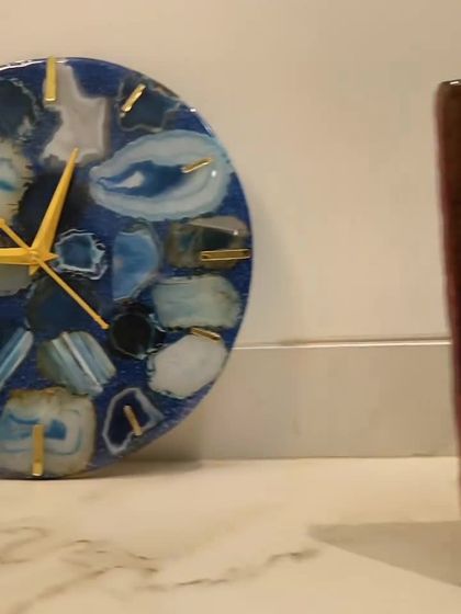 My custom resin clocks are functional art, designed to match your style. I create various designs, from elegant geode patterns with gold details to modern wood and resin combinations. Some clocks even feature glowing honeycomb patterns or miniature ocean scenes.