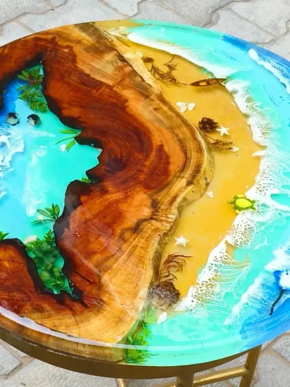 I specialize in creating custom dining and coffee tables that capture the beauty of water. Using natural Acacia or Teak wood slabs, I design flowing rivers and realistic ocean scenes with 3D waves, miniature boats, and sea life, bringing a piece of the coast right into your living space.