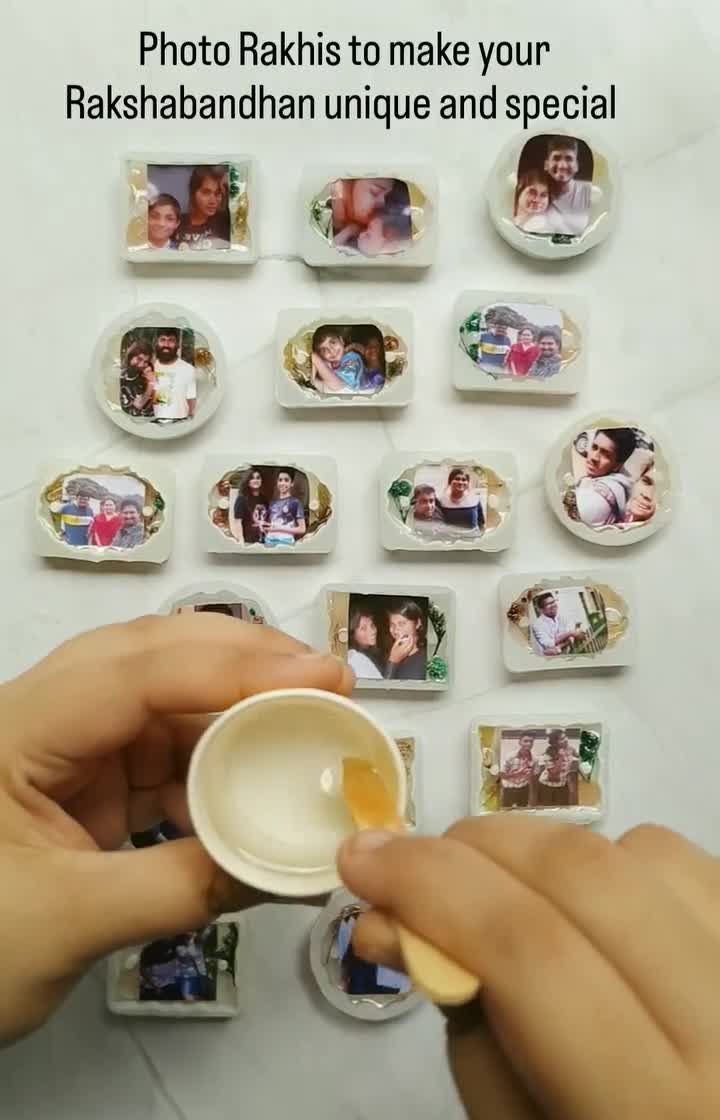 This is one of my most loved offerings, a rakhi that holds a special photograph. These unique photo rakhis are designed to be repurposed as fridge magnets or keychains, serving as a lasting reminder of your bond long after the festival.