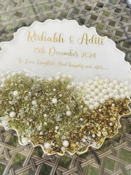 Your wedding day is full of beautiful moments and items that deserve to be treasured. I specialize in preserving your precious varmalas, kaleeras, chooda, and photos in custom resin frames. I offer various styles, including large teakwood floating frames with LED lights and smaller, intricate photo frames, ensuring your 'shaadi ki yaadein' are captured forever.