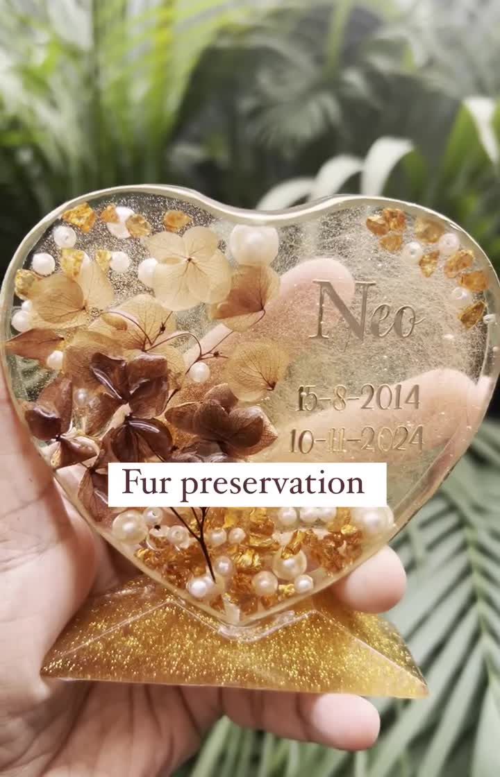 Our pets leave paw prints on our hearts. To honor their memory, I create gentle and loving pet memorial keepsakes. I delicately preserve their fur or hair in custom resin pieces like heart-shaped memorials or wearable jewelry, creating a simple and beautiful tribute to keep them close to you, always.