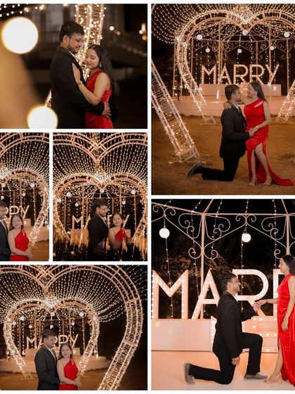 We create cinematic pre-wedding films with candid moments, using 55+ themed sets at our private location or heritage and destination spots, with props and guidance for natural shots.