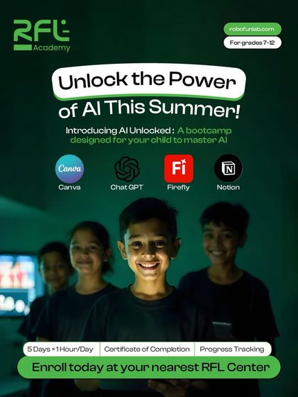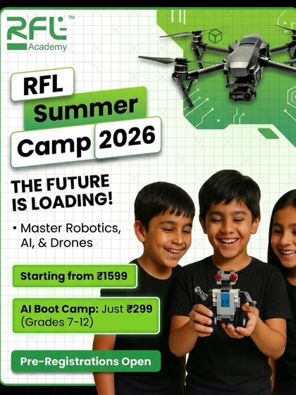 Available across RFL Academy Ahmedabad - Satellite Robotics | Coding | IoT | AI for Students of Grades 1 to 12.