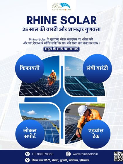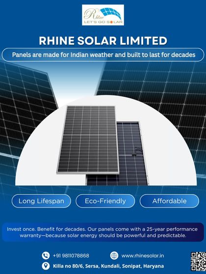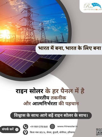 Namaste, hum Rhine Solar hain – Haryana se, par Bharat bhar mein humara vishwas hai. Shuruaat ek simple soch thi: desh ko apni saaf, sasti urja deni hai, jo har mausam mein chale. Ghar ho ya factory, har jagah humare panels ki roshni pahunche, yahi mission hai. Har panel mein sirf technology nahi, hamara bharosa hai. Hum apne aap ko aapka asli 'solar urja ka saathi' maante hain.