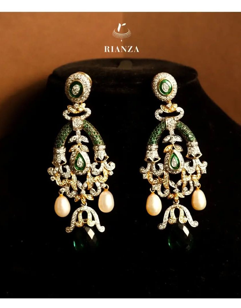 The right pair of earrings can define a look, whether for your sangeet, cocktail, or reception. This collection includes everything from dramatic diamond danglers to versatile studs with changeable colored stones.