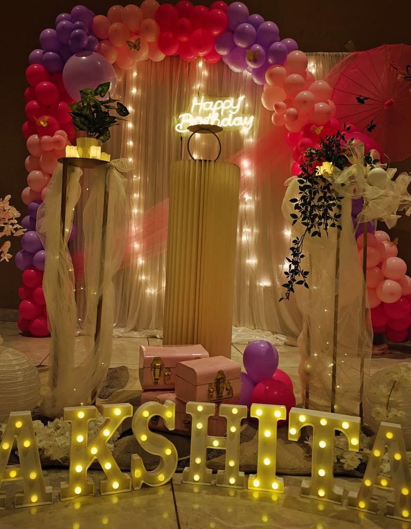 My services are not just for toddlers. I also design more elegant and sophisticated themes for older children or for events like baby showers, using elements like neon signs, floral arrangements, and unique color palettes like pastels or star and moon motifs.