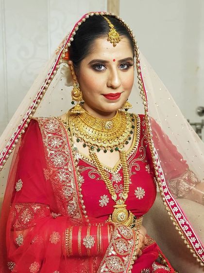 Brides seeking an elegant traditional Indian bridal look who value attention to detail and want their makeup to last throughout their wedding ceremonies while looking flawless in photographs.