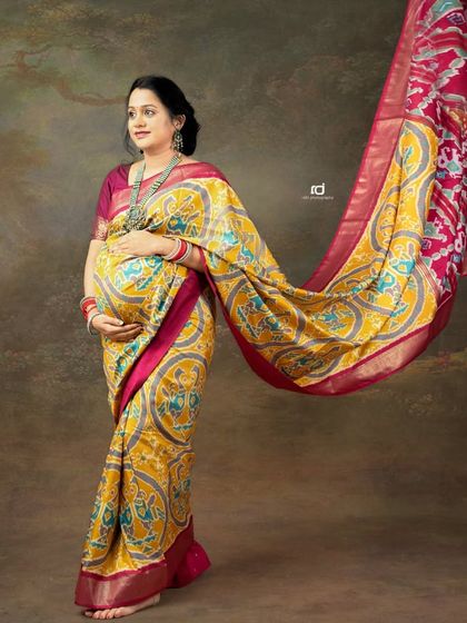 Traditional Touch - Love adding sarees and ethnic wear, especially for traditional maternity saree shoot. Our culture, our pride.