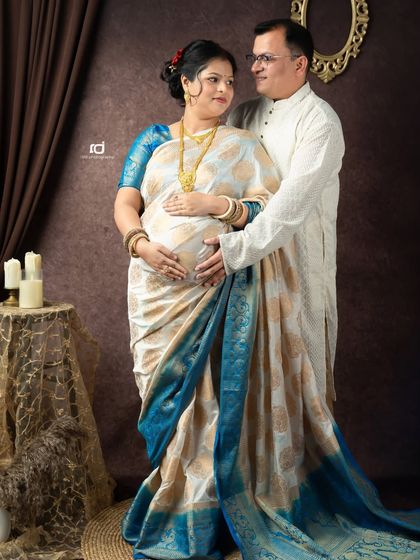 Traditional Touch - Love adding sarees and ethnic wear, especially for traditional maternity saree shoot. Our culture, our pride.