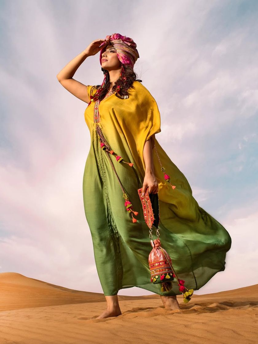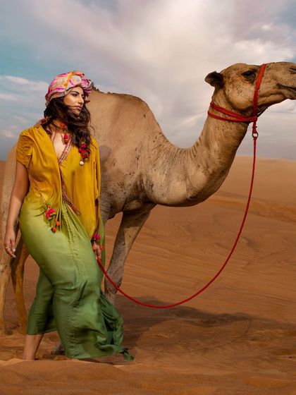 This is where I get to build stories with clothes, bringing a creative vision to life from concept to execution. I have a special love for desert shoots, using flowing kaftans and layered silver to create "habibi vibes". I collaborate with talented photographers and artists to produce visuals that feel like a whole new world.