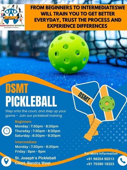 We run step-by-step pickleball coaching for beginners and intermediates at St. Joseph’s Court in Bandra West, with separate batches focused on real skill improvement.