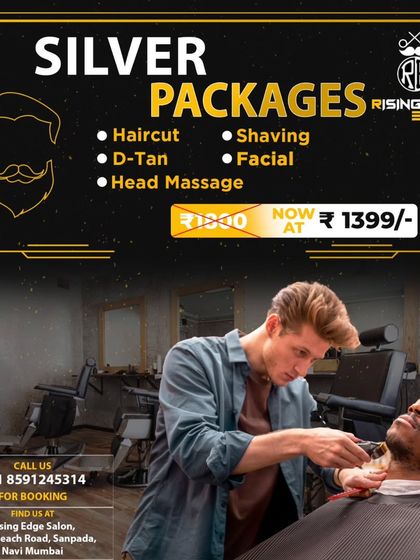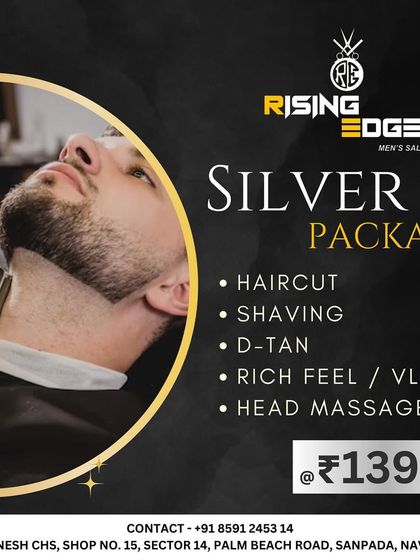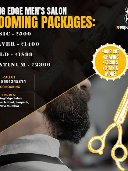 Namaste! Hum Rising Edge Men's Salon hain, Sanpada pe. Hum koi normal salon nahi hain, bhai. Yahan pe style aur confidence dono milta hai. Humare stylists apko sirf smart nahi banate, apko ekdam comfortable feel karvate hain. Har ek client ki khushi humare liye sab kuch hai. Jab ap yahan se jaate ho, toh sirf look nahi badalta, pura attitude badal jaata hai.
